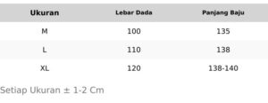 Tersedia beberapa ukuran mulai dari M, L dan juga XL.